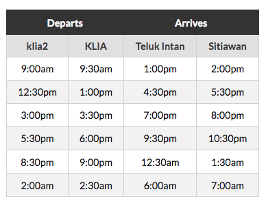 Below is the timetable for another bus company that runs between KL International Airport and Sitiawan.