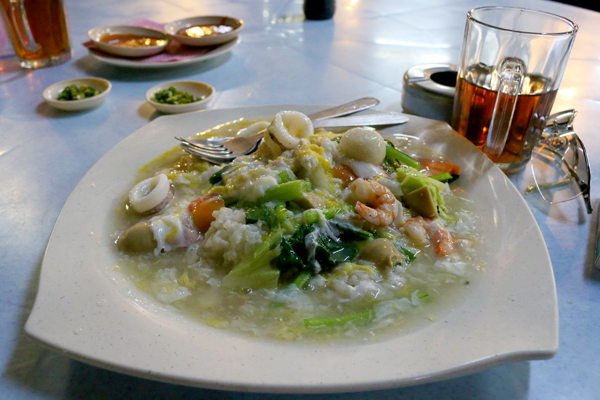 For those who don’t like the oily fried foods typical of Chinese cuisine, try lampui (seafood porridge).