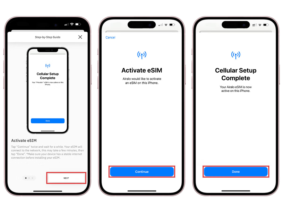 - Direct: Go to the Airalo app and follow the step-by-step prompts to install your eSIM.
