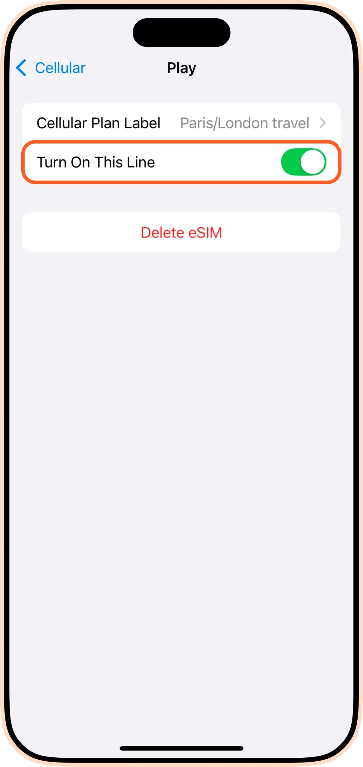 - Switch “Cellular data" from your “primary" line to an eSIM(airalo).