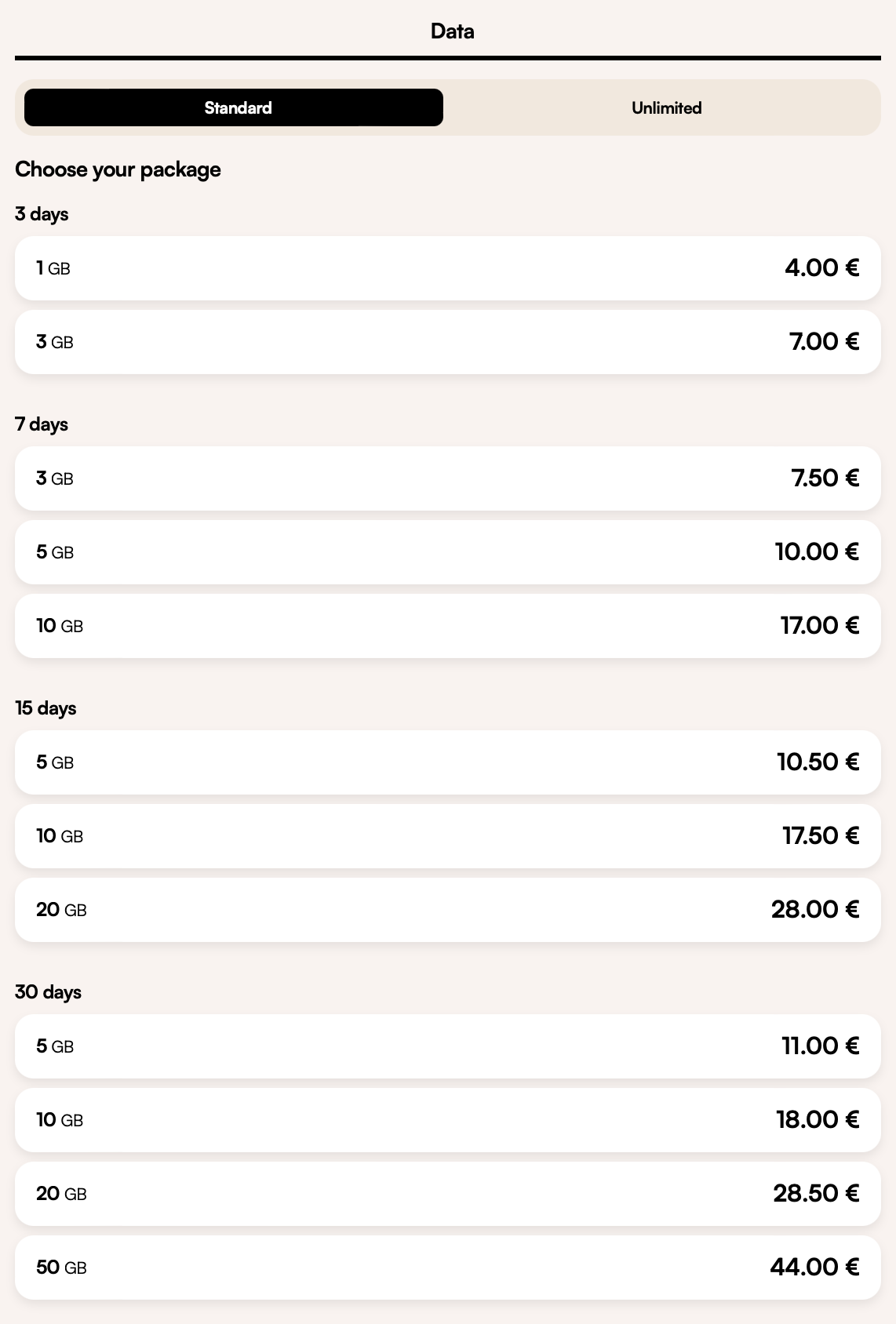 Since my trip was for 10 days, I purchased the “2GB 15-day USD 8.00"*old plan.